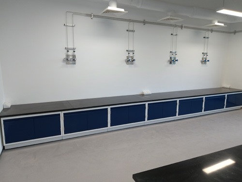 3.的活動背板:中間臺西南部(柜身背影)為設配內層,小柜子后側有可轉動檔板,使用于隱蔽從室內地坪預埋或天花板吊頂板找出系統柱到實驗儀器工作臺面的電、氣線路,可在不需要 隨便工貝的環境下來到處理清算通道。
